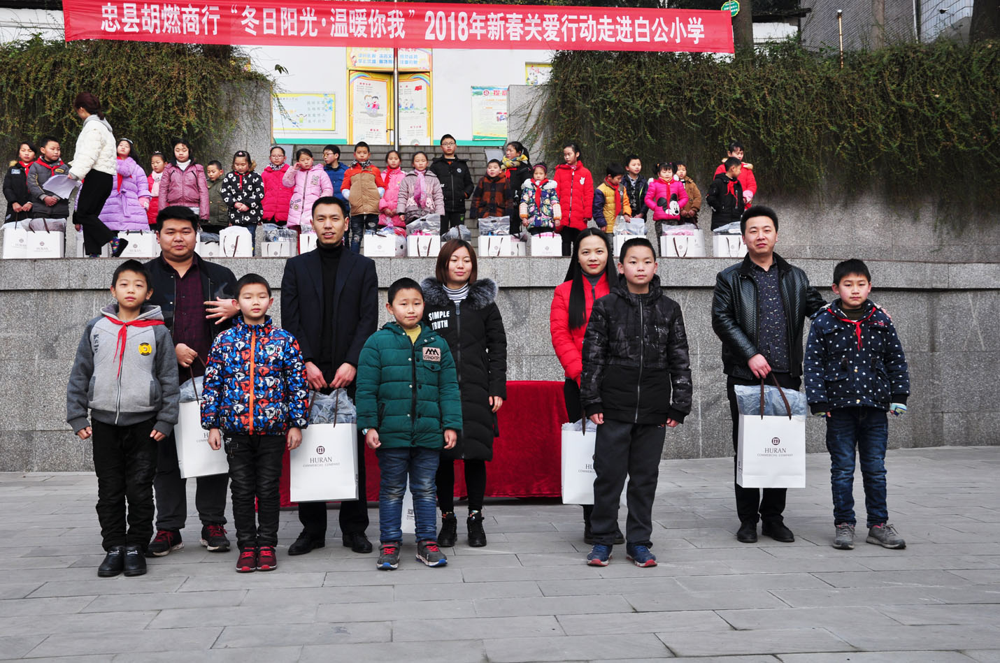 忠縣胡燃商行(xíng)2018年(nián)新春關愛‍←"¥(ài)行(xíng)動走進白(bái)公小(xiǎo)學